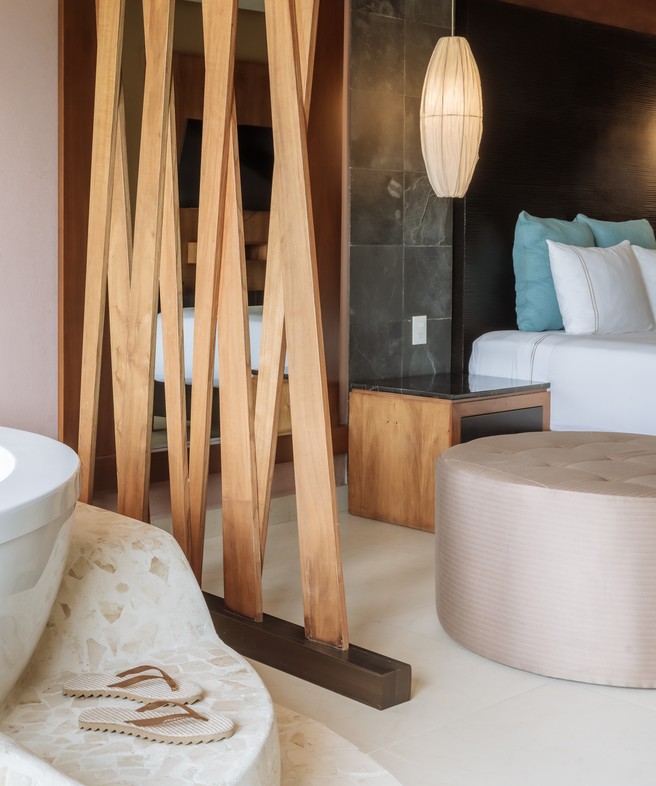 El hotel cuenta con 444 suites amplias, todas equipadas con jacuzzi y libres de plástico de un solo uso. La oferta de alojamiento abarca distintas categorías pensadas para cada perfil: las familias tienen a su disposición las habitaciones One Bedroom Family en modalidad pool view, ocean view y swim out, mientras que las parejas pueden optar por opciones más íntimas como las Junior Suite con acceso directo a la piscina, las Premium Swim Up o las exclusivas Corner Suite Frente al Mar y las Two Bedroom Ocean Front Penthouse Suites.